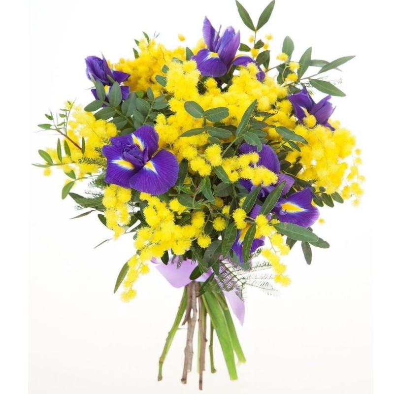 Ирис 7 шт., Мимоза 4 шт. |